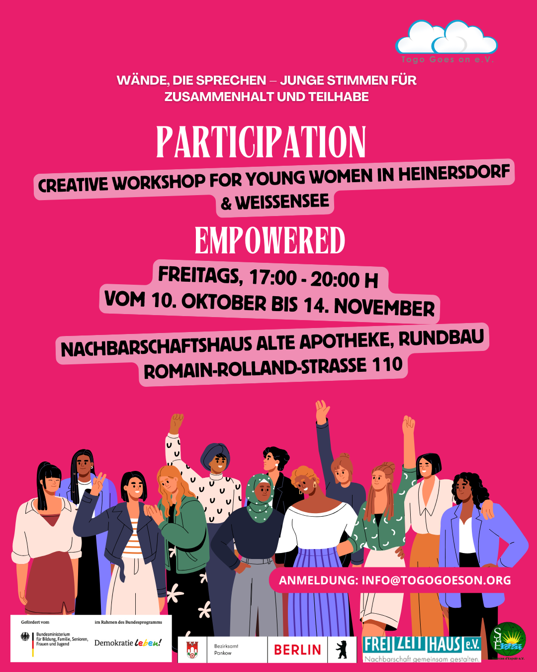 • Jeden Freitag bis 14. Nov: Kreativworkshops für junge Frauen in Heinersdorf & Weißensee